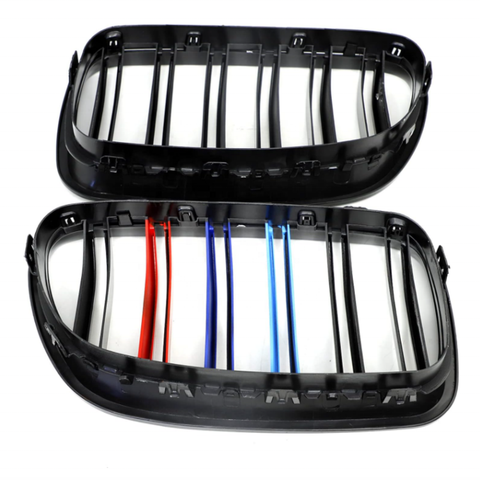 Auto Frontgrill dreifarbig für BMW 5er F10 F11 F18 2010-2017 ABS Single Double Lamelle Mattschwarz